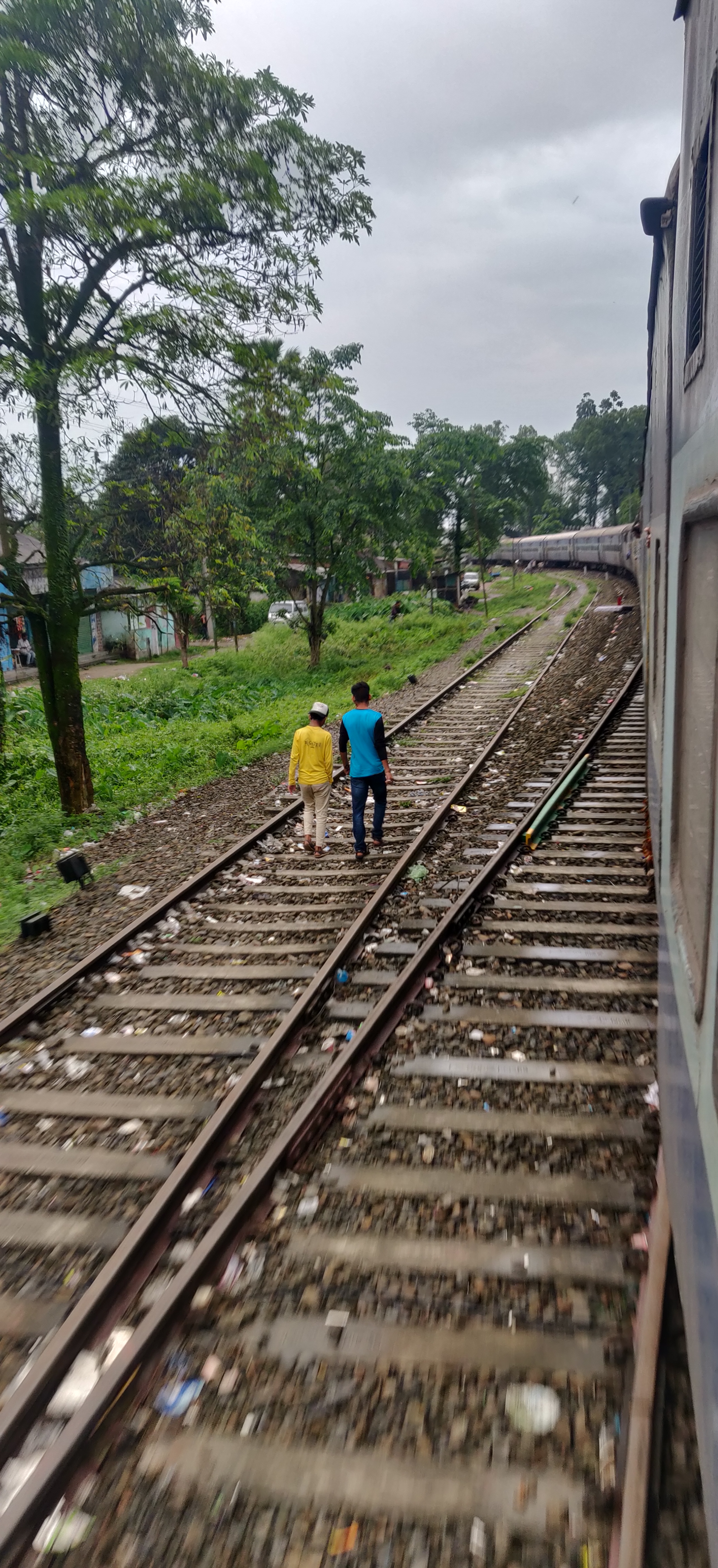 This scene was captured by me while on a local train journey in Assam. I was spending my time solely by looking at the passing trees and the beauteous environment blocking the gateway until i noticed them. They seem to have caught my attention. My mind started pacing on the questions of their existence. They might be friends, or they might be brothers or a they might have a common goal, anything is possible. Philosophical thoughts started gushing into my mind. My mind started creating questions, who has built up this boundaries between humans, although all are same. Who has created this narrow boundaries of religion. Be happy in life. The mind is the constructor who creates all the narrow boundaries and in order to live a better and more peaceful life we will have to break up this walls of obstruction or climb over it. One should chose friends not based on their caste, but on the basis of behaviour towards them. This way the world could be a better place to live in.